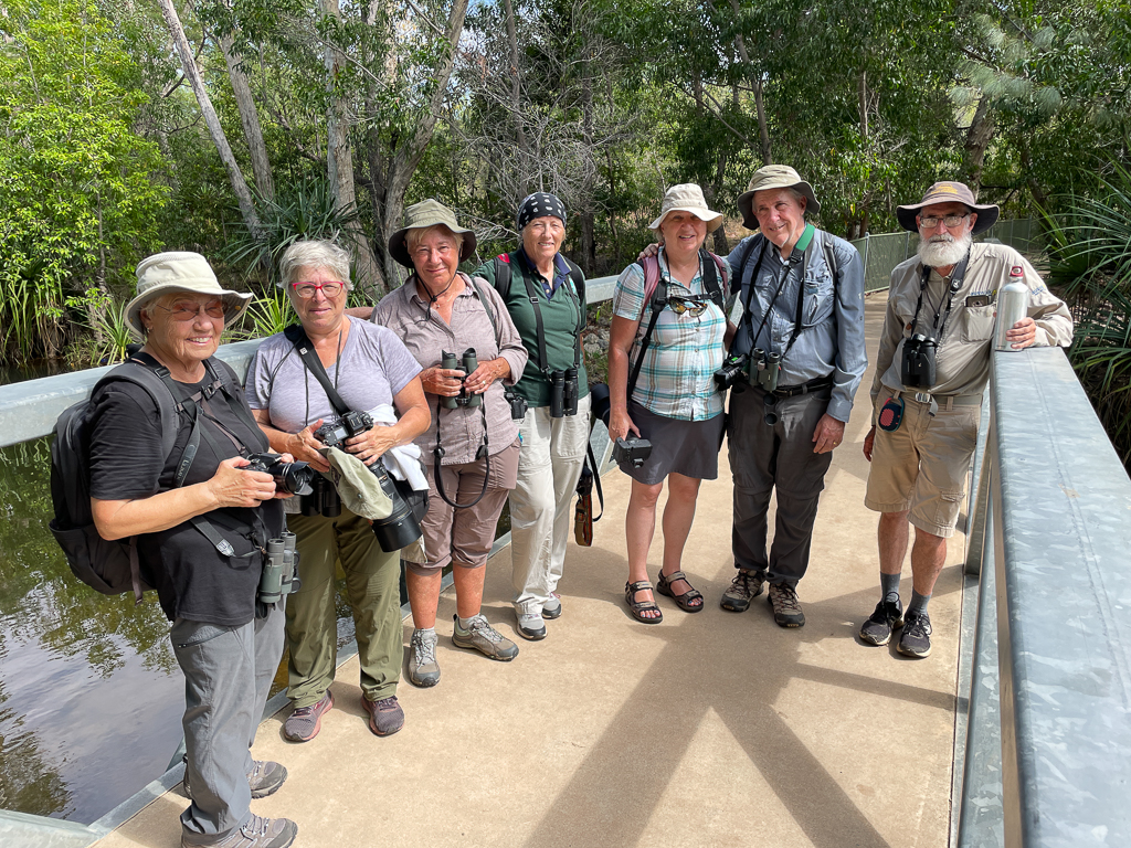 After quick introductions at our hotel overlooking Darwin Harbour, we head to the Darwin Sailing Club for a sunset dinner at their waterfront bistro. Before dinner, much of the group had an opportunity to go birdwatching along the esplanade in front of our hotel, a 3-km paved walkway surrounded by lush green lawns and palms that wraps around the harbour – birds common here included Orange-footed Scrubfowl, Torresian Imperial-Pigeon, Masked Lapwing, Silver Gull, Sulphur-crested Cockatoo, Red-collared Lorikeets and Magpie-larks.