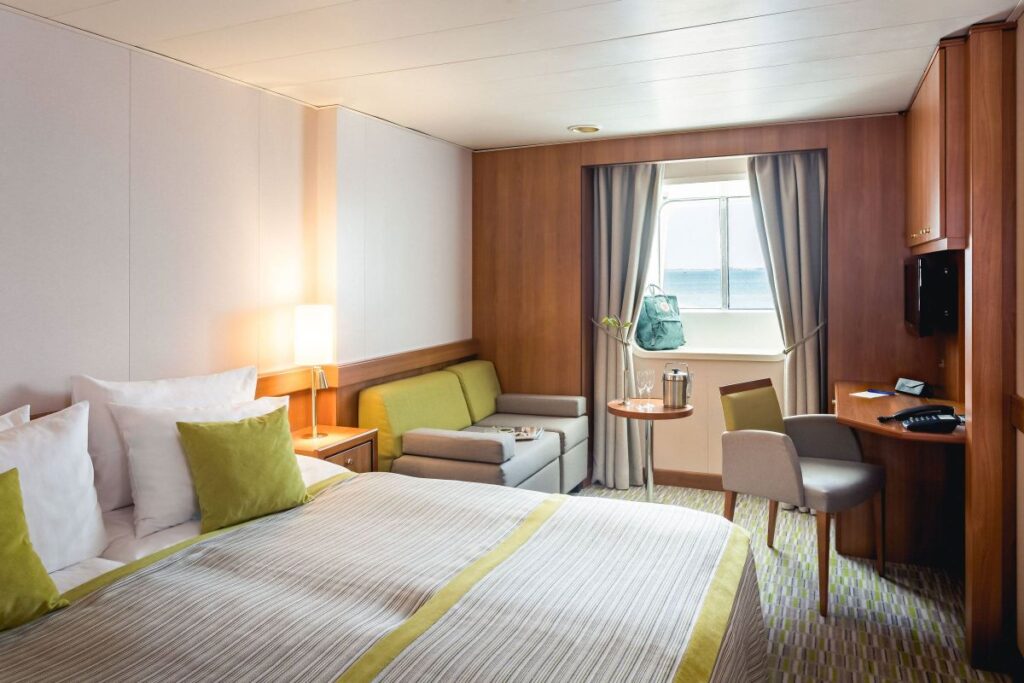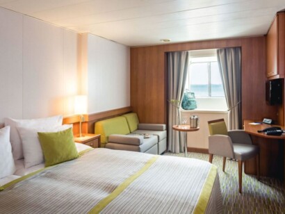 The common areas are larger and beautifully appointed, and the ship has two kitchens, one on the Lido deck for al fresco dining when weather permits.