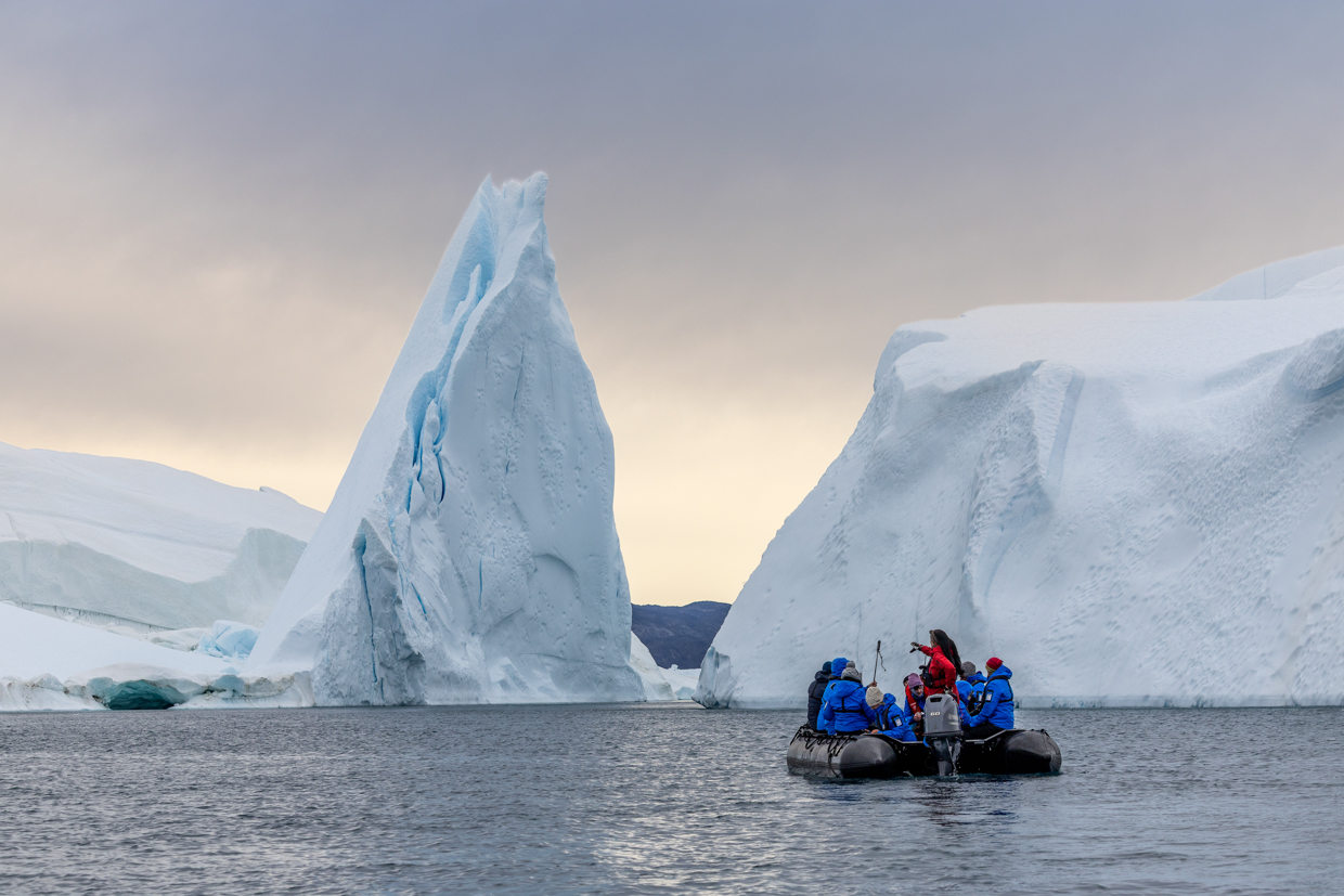 - Hike and Zodiac cruise amidst stunning glaciers, islands, and fjords of Greenland's coast