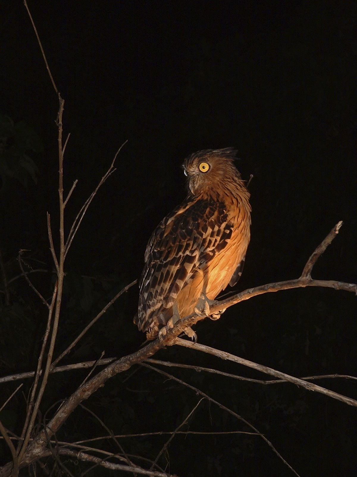 Raptors include Wallace’s Hawk-Eagle, Black Eagle and Jerdon’s Baza, and we have the opportunity for nocturnal walks and drives for such prizes as Buffy Fish Owl, Brown Wood Owl, and maybe Gould’s and Large Frogmouths.