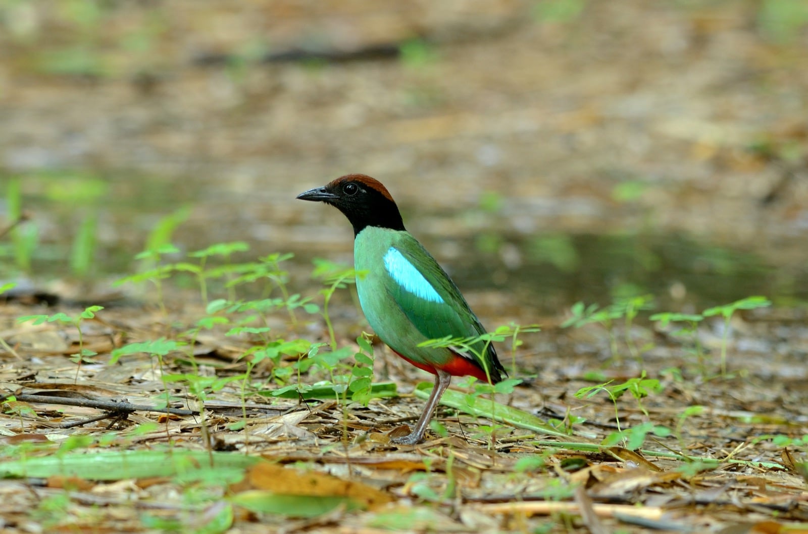 Possibilities seem endless: up to three species of pittas including the magnificent Blue-headed and Black-and-crimson Pittas (well-named "Jewel-Thrushes"), Blue-crowned Hanging-Parrot, kingfishers including Rufous-collared, and a host of babblers and tit-babblers, broadbills, an array of woodpeckers from Great Slaty to Rufous Piculet, barbets, minivets, fantails, cuckoos and five species of malkohas, Diard’s and Red-naped Trogons, spiderhunters, Crested Jay and nearly all of Borneo’s hornbills, including trumpeting Rhinoceros Hornbill and the strange Helmeted Hornbill.