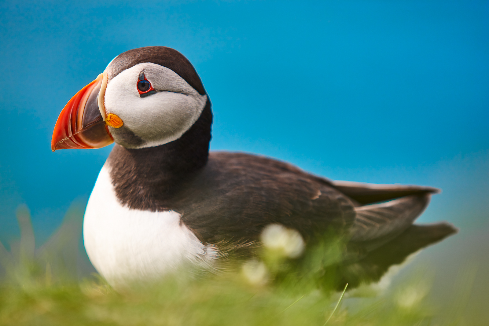 Numerous species of seabirds, including the famous puffin, nest in the steep rock faces along the ocean cliffs. The volcanically active area has seen two major eruptions in recent times: the formation of the island of Surtsey in 1963, and the Eldfell eruption ten years later that destroyed much of Heimaey.