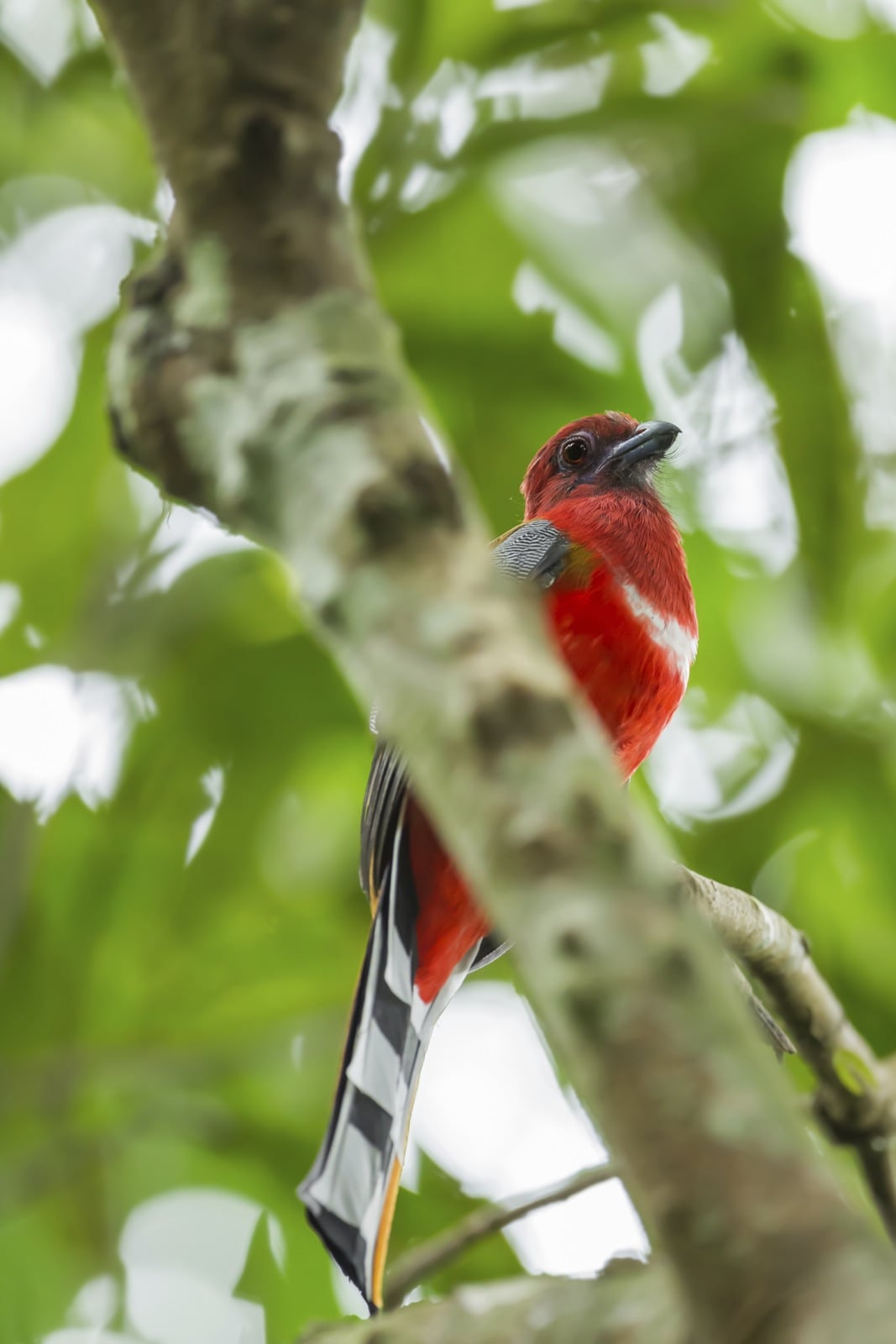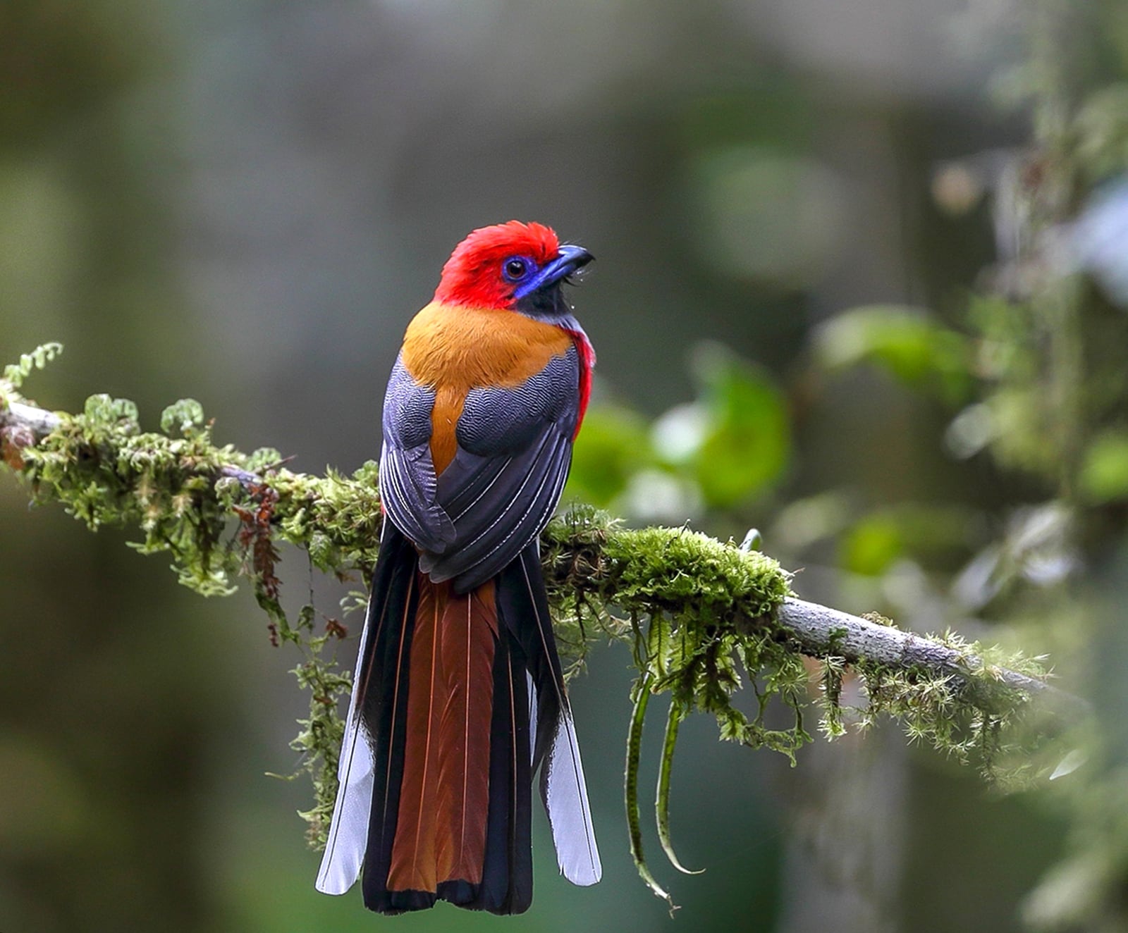 Mixed feeding flocks move quickly and noisily through the forests – often the central species is Chestnut-crowned (Malayan) Laughingthrush accompanied by Silver-eared Mesia, Chestnut-crowned and Mountain Leaf-Warblers, babblers including Gray-throated, Golden and Buff-breasted, Streaked and Pygmy Wren-babblers, White-browed and Black-eared Shrike-Babblers, Blue-winged Minla, Mountain Fulvetta, Long-tailed Sibia, and Bronzed Drongo with Black-and-crimson Oriole and Blue Nuthatch. Lesser Shortwings occupy deep gullies, and heavily wooded areas support Sultan Tit, Black Laughingthrush, Red-bearded Bee-eater, Green Magpie and Red-headed Trogon, and with great luck we may encounter the endemic Mountain Peacock-Pheasant and Malayan Whistling-Thrush.