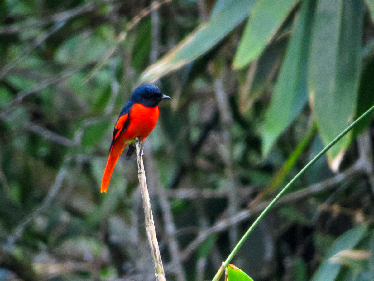 Blyth’s Hawk Eagle is quite widespread, and woodlands hold Speckled Piculet, Greater and Lesser Yellownapes, Silver-breasted Broadbill, Grey-chinned Minivet, Orange-bellied Leafbird, Ochraceous and Mountain Bulbuls, Lesser Racket-tailed and Greater Racket-tailed Drongos, Large Scimitar Babbler, White-bellied Yuhina, Slaty-backed Forktail, Mountain Tailorbird, White-throated Fantail, Everett’s White-eye, Black-throated Sunbird, Streaked Spiderhunter and Fire-breasted Flowerpecker. Uncommon but widespread inhabitants include Rufous-bellied Eagle, Wedge-tailed Green Pigeon, Large Hawk-Cuckoo, Oriental Cuckoo, Mountain Scops-Owl, Collared Owlet, Wreathed and Helmeted Hornbills, Bay Woodpecker, Ashy Bulbul and Himalayan Cutia.