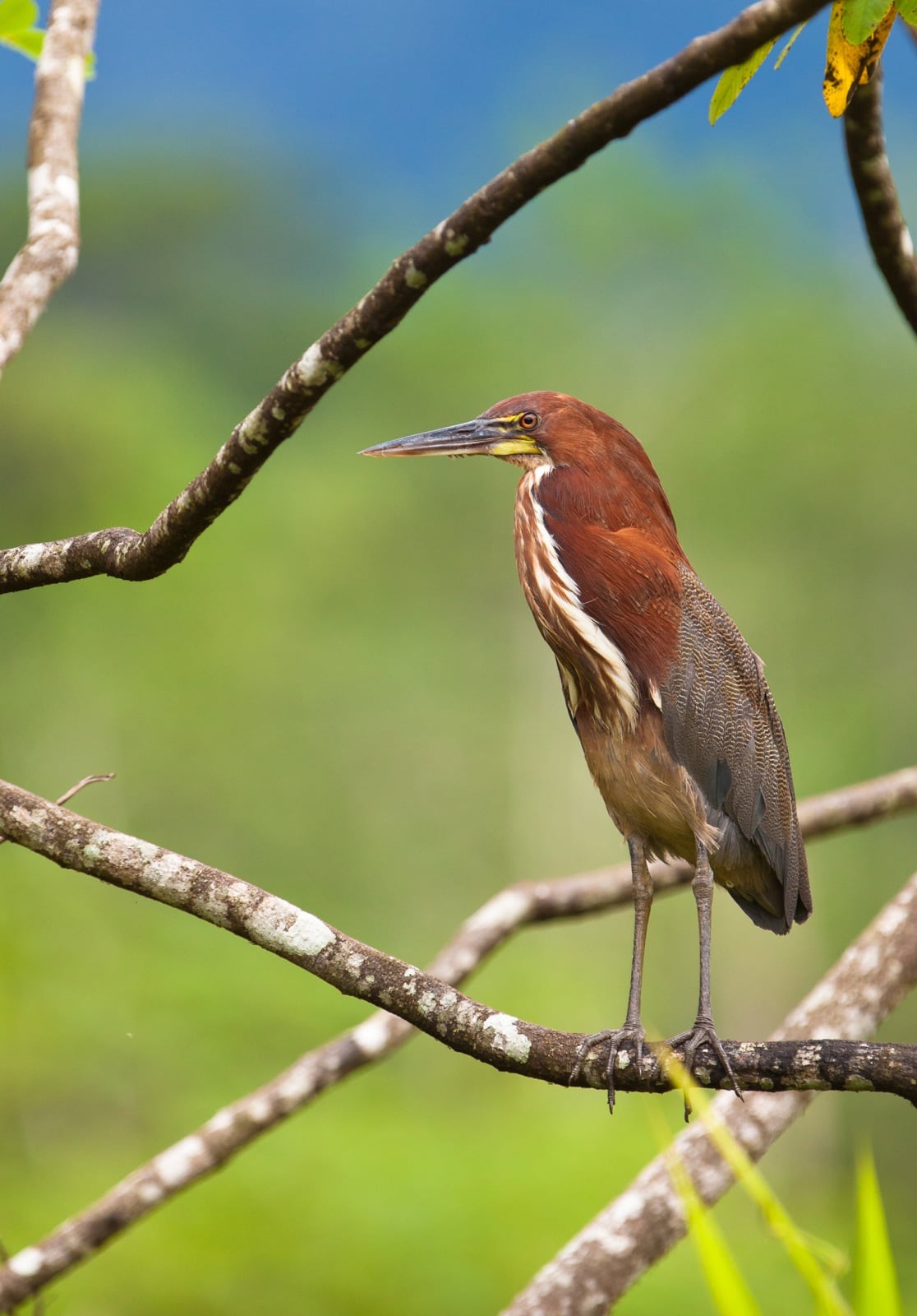 Further afield, one morning we will visit the Aripo Savannah, where open-country birds will be easy to see, providing a good introduction for those newer to birding. Guests can expect to see the ubiquitous Southern Lapwing, not to mention Pied-Water-Tyrant, Red-breasted Blackbird, Savannah Hawk, and Grassland Yellow-Finch. Elsewhere in palm groves and wetlands we will listen for the raucous calls of macaws. Two species are possible here: the rare Blue-and-Yellow Macaw and the smaller Red-bellied Macaw. When mixing forest and wetlands we often amass a large bird list and today will be no exception. These habitats can produce a varied set of birds with bizarre names including Rufous Crab Hawk, Pinnated Bittern, Bicolored Conebill, Yellow-chinned Spinetail, Large-billed Tern, Wattled Jacana, Violaceous Euphonia and Silvered Antbird. We should be close to getting into the triple digits on our species list today.